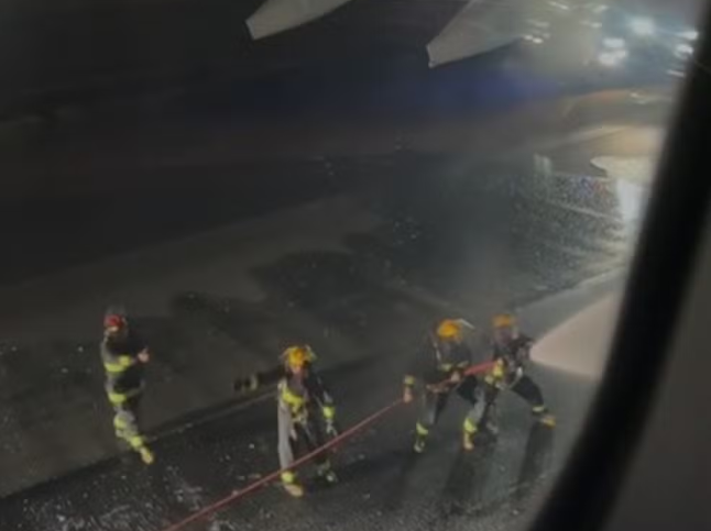 O motor de um avião explodiu logo após a decolagem...